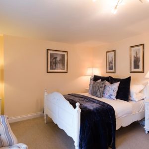 The room has french style furniture and has a warm cosy feel. The double bed is sumptuously dressed to aid a restful nights sleep. It has an LCD television with DVD player and freeview channels and an extensive hospitality tray.