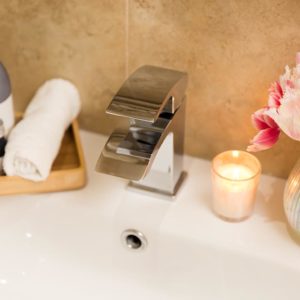 The newly refurbished bathroom has a large walk in shower with a selection of toiletries and a hairdryer, everything needed for an enjoyable stay.