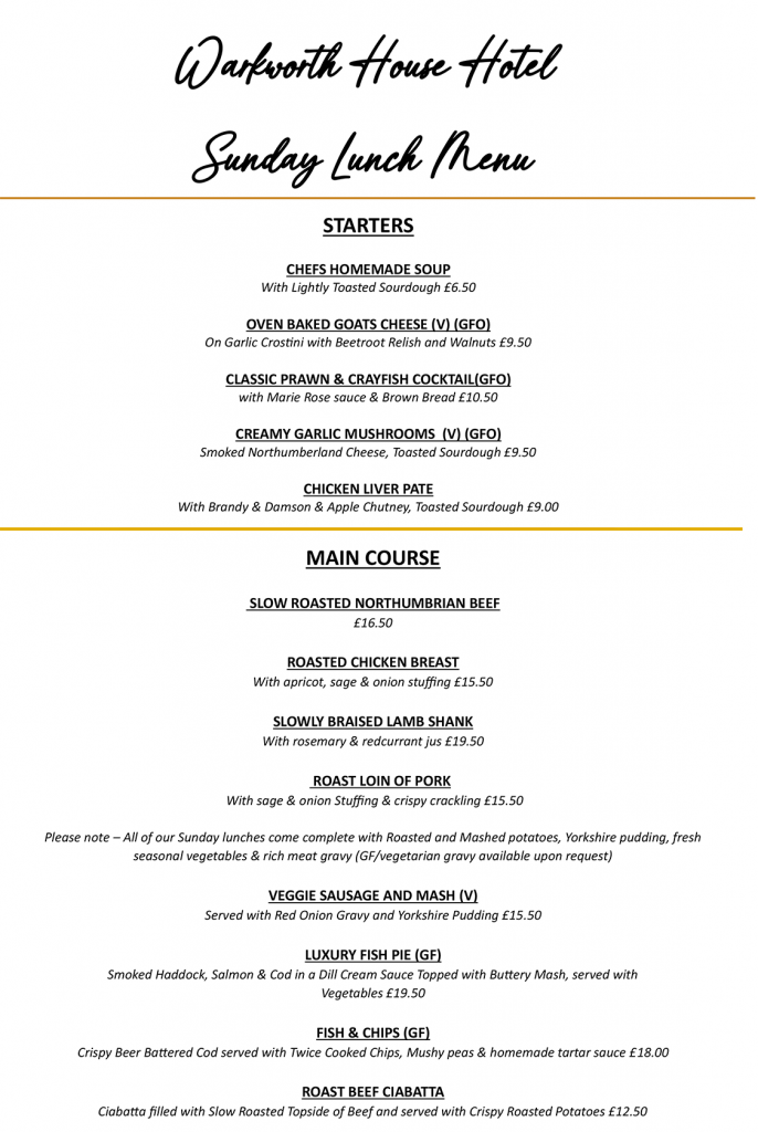 SUNDAY – SERVED FROM 12 PM