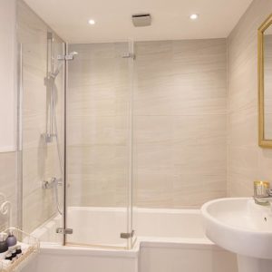 Elegant white tiled bathroom and generous toiletries ensure a memorable stay.